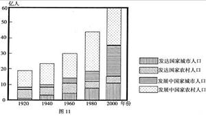 (1)2000年,发达国家城市人口总数约为_____________,发展中国家城市人口总数约为______________________。