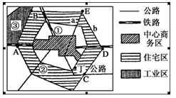 (4)若图中a、b表示地租等值线,则A、B、C、D、E中,__________处不合理,说明原因。