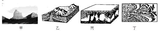 (5)从褶皱的弯曲形态判断,图中乙地是??;从地表的形态判断,图中甲地的