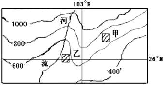 小题2:图乙所示为一中学地理活动小组用简易方法测得的某地高程情况,如果该地降水丰富,根据图中信息判断,图示区域较大的溪沟可能有?( )