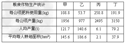 4、单选题 下表为四个国家在同一年度中的粮食作物生产的统计表。完成1~3题。