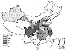5、单选题 图5为我国2007年某农作物年产量分布图。读图回答题。
