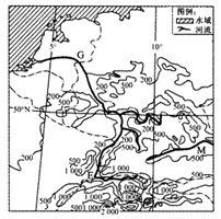 2.图示M位于多瑙河上游,河谷呈“V”字型,河流水位较高;而G地受温带海洋性气候影响,河流流量稳定,但位于河流下游,故河床较浅。