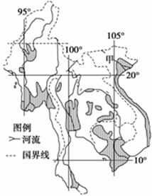 1.图中阴影部分表示该地区某种农产品的主要产区,该农产品为2.下列产业部门中,目前最适宜由中国向图中甲国转移的是3.该区域河流中下游平原,是重要农业区,影响其农业生产的主要社会经济条件是