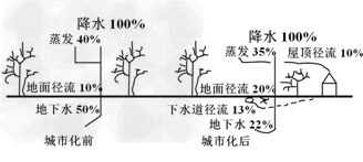 (1)城市化后较城市化前的水循环中蒸发量有何变化?分析其原因。