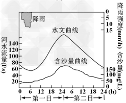 2、综合题  图甲为“济南市城市化前后水循环示意图”,图乙为“济南市南部森林覆盖的河谷在暴雨中呈现的河流流量曲线及含沙量曲线”,读图后回答。