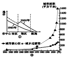 4、单选题  ? 下图图①为“某市同一地区不同时期地价曲线图”,图②为“该市城市规模的变化图”,读图,完成1—2题。