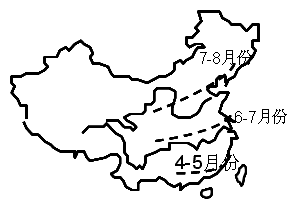 (2)6—7月雨带位于我国__________地区,该地区出现持续一个月的阴雨天气,叫____________。