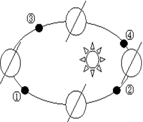 点评:本题难度较小,解答本题的关键是确定图中地球所在位置对应节气(或日期)进而判断①、②、③、④四点的大体时间。