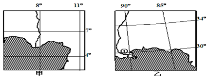 小题1:根据图示的经纬度位置和海陆轮廓判断,甲位于几内亚湾沿海,为热带地区,故