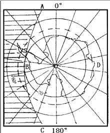 4、综合题 (8分)读南极洲图完成下列要求:?