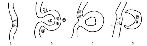 3、单选题 下图中为某河流、湖泊的发展过程四个阶段,读图完成下列各题。