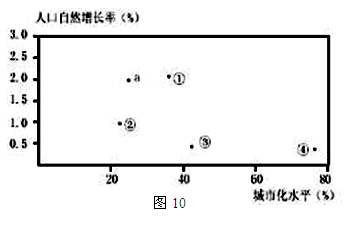 小题2:a所示国家城市化水平低,人口自然增长率高,故判断为发展中国家,选A项。