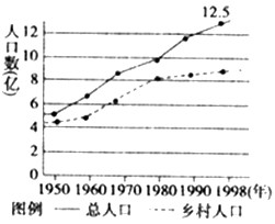 (3)到1998年,我国城市人口占总人口的比重约为____________________,与世界经济发达国家相比,这个比重是很_______________(填“低”或“高”)的。