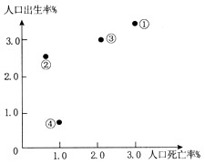 2、下列国家中,其人口增长模式与④点相似的国家是