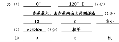 。(2分)四点地球自转角速度         。(相等/不相等)