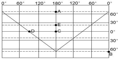 ⑶ 若B点为黑夜,则图中各点中地方时为6点的是              ,请用阴影线在图中画出极夜范围。