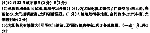 (2)根据材料二,分析太阳能电站选择在延庆而非A地的原因?(4分)