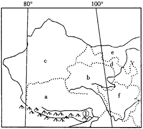 4、单选题 该图是我国西部地区几个省区略图,读图回答下面问题。