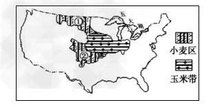 2、单选题 下图为“美国本土小麦区和玉米带分布示意图”。读图完成1-2 题。
