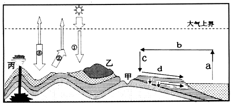 5、综合题 下图中数字表示大气受热过程,字母表示水循环的环节。读图回答下列问题。(10分)