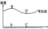 ①A点比B点气压低 ②B点比D点气压高 ③B点和D点气压相等 ④C点比D点气压高