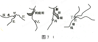 2、单选题 对照有关甲、乙、丙、丁四个省会城市的位置示意图7,正确说法是