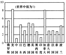 5、单选题 读“20世纪以来温室气体总量居世界前列的部分国家人均温室气体排放量统计图”完成1—3题。