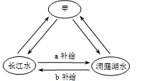 1.在下列月份中,箭头a代表的补给主要发生在2.甲代表的水体类型是3.如果在洞庭湖区进行大规模退耕还湖,可导致