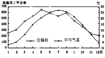 3、单选题 下图为我国某城市月平均气温及月平均总辐射曲线图。完成下列题。
