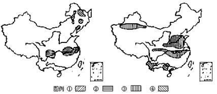 1.图例①、②、③、④代表的四种农作物依次为2.上述四种农作物优势产区确定的主要依据是
