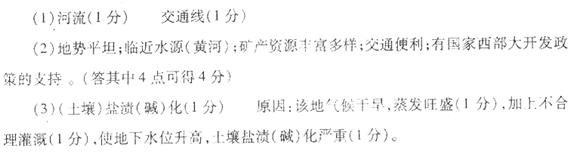 (2)简述呼包鄂发展工业的优势区位条件。(4分)