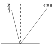 1、单选题 读某城市二至日正午太阳照射图,回答下列各题