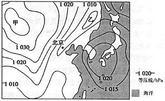 5、单选题  读某区域某月海平面气压分布图(单位:百帕),完成下列各题