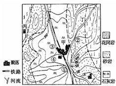 小题3:图中甲、乙、丙、丁四处最有可能发展成旅游景点的是(?)