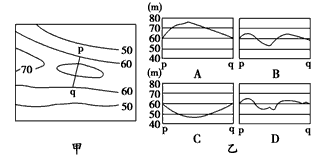 3、单选题 下图中图甲是“某地区等高线的地形图”(单位:米)。沿pq线作地形剖面图不可能是图乙中的