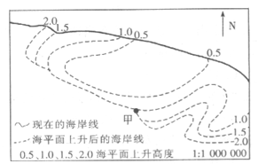 小题1:如甲处被海水淹没,海平面上升的高度至少在
