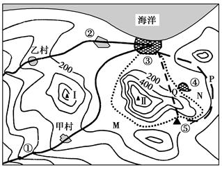 1.图中甲乙丙丁四座村庄海拔较低的是