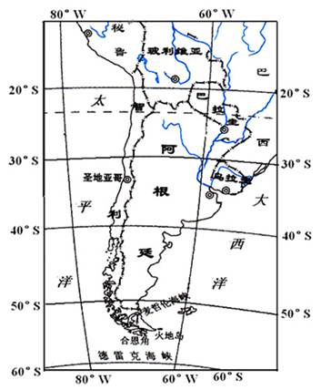 3、综合题 (28分)智利是世界上最狭长的国家,西部是较低的海岸山脉,东部是高峻连绵的安第斯山脉,两条山脉之间是狭长的纵谷;自然景观大致以30°S和40°S纬线为界,北部荒漠、中部硬叶林、南部阔叶林。根据智利地理位置示意图,结合所学知识,完成(1)~(4)题。