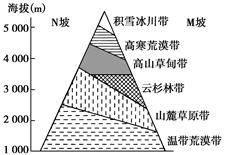 2、单选题 读我国某山脉90°E附近垂直自然带分布示意图,回答小题。