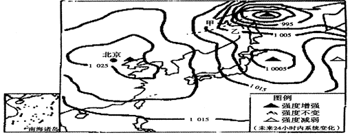 【小题1】图中甲、乙两地天气状况比较,正确的是   (   )
