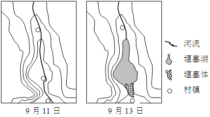 小题1:直接读图,结合图中堵截物的位置和左侧等高线的变化可知滑坡是堰塞湖形成的直接原因。