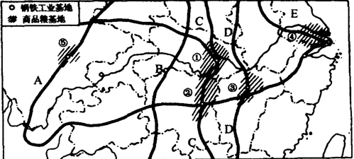 (1)图中与长江干流相交的铁路线,自西向东依次是:A是?线,B是?线,C是?线,D是?,E是京沪线。