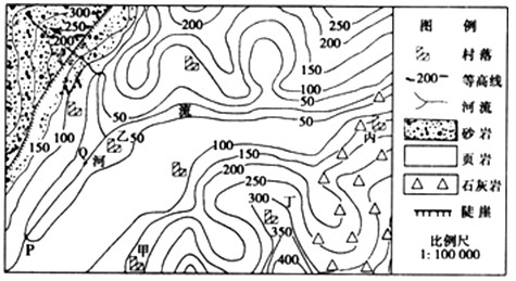 2、单选题 下图为我国南方某区域的地质、地形略图,图中河谷低地是当地耕地的主要分布区。读图完成1~2题。