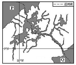 4、单选题 图为世界某运河区分布略图,图中虚线为运河航线。回答9~11题。