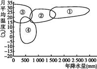 本题解析:从气温和降水的特征来看,图中①地为热带雨林气候。