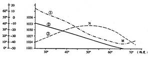 1.图中①、②、③曲线分别代表2.该经线可能是3.关于图中①、②、③曲线说法的叙述,正确的是