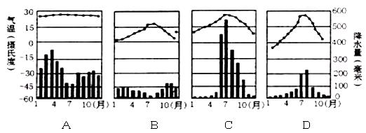 A.热带季风气候、亚热带季风气候、温带季风气候
