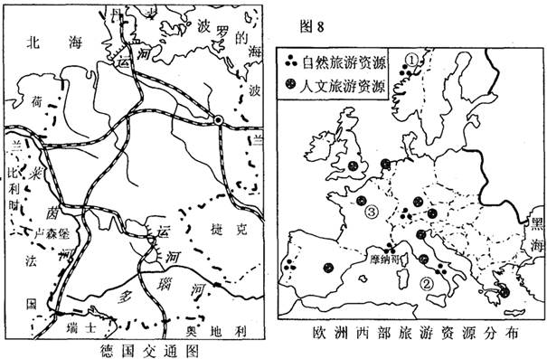 (2)德国制造业发达,产品人量出口,因其______________,在国际市场竞争力强。(4分)