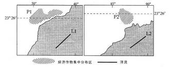 2.洋流L1与L2流向不一致时,下列现象有可能出现的是